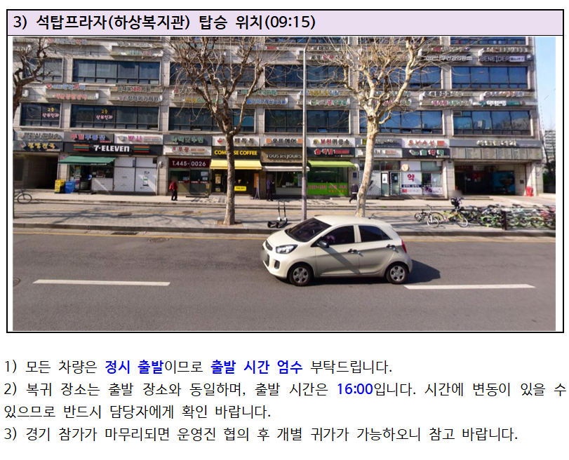 원활한 이동을 위해 탑승시간에 늦지 않도록 부탁 드립니다.