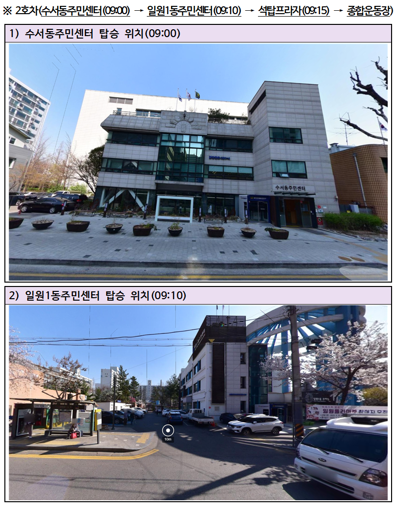 ※ 2호차 : 출발(수서) → 경우(일원1동주민센터) → 경유(석탑프라자) → 도착(잠실종합운동장)