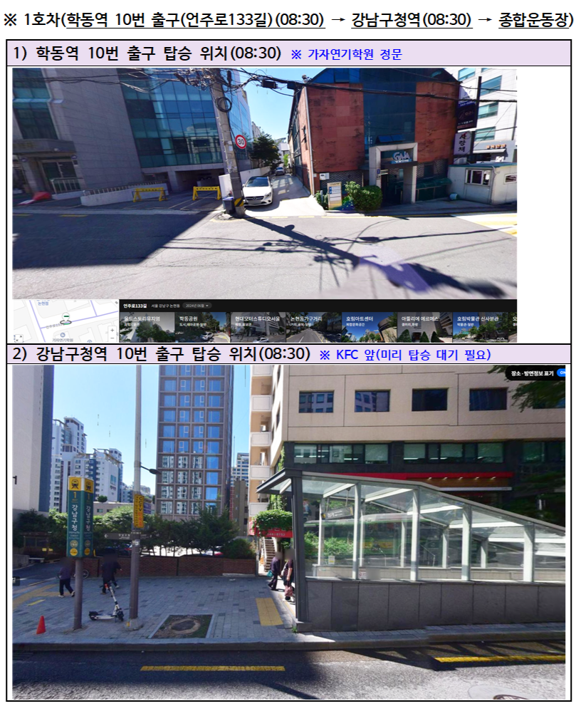 ※ 1호차 : 출발(학동) → 경유(강남구청) → 도착(잠실종합운동장)